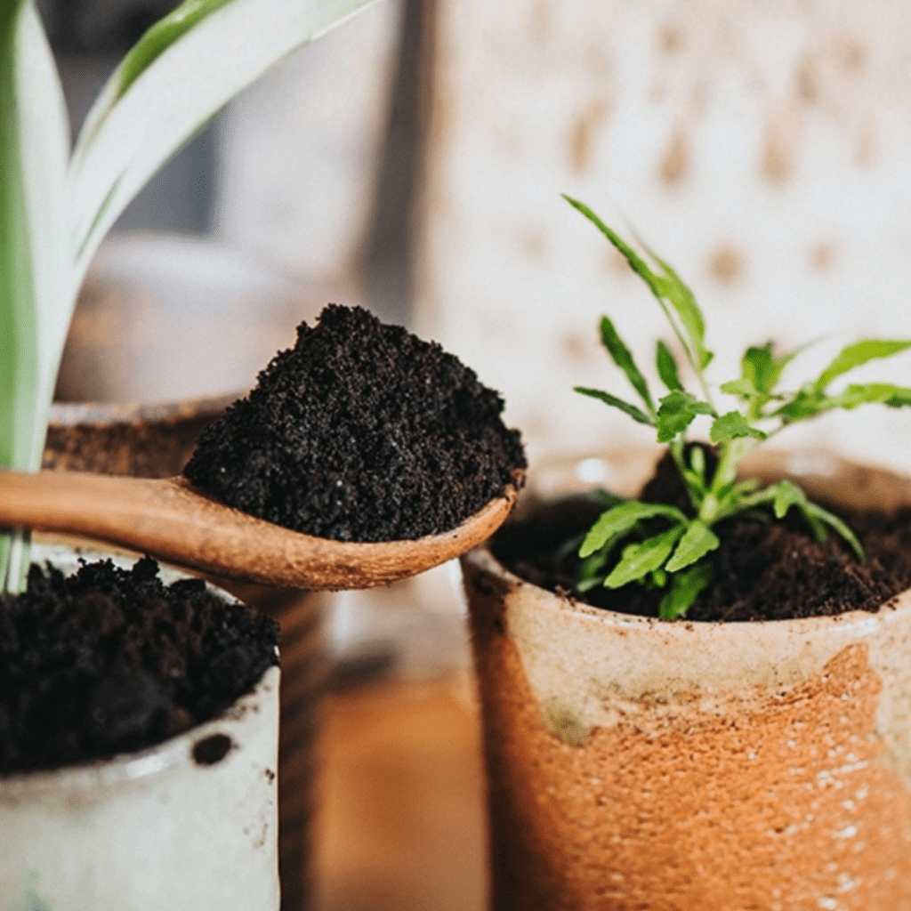 - Como adubo: deixe a borra secar e misture pequenas quantidades à terra antes de plantar ou espalhe sobre o solo.